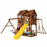 Детский городок изготовлен из северной древесины хвойных пород, обработанной безопасной декоративно-защитной пропиткой. Технология значительно увеличивает срок службы конструкций, повышает прочность древесины, защищает её от гниения и грибков. Обработка придаёт дереву приятный оттенок, проявляет и подчёркивает его текстуру. Используемая пропитка не содержит токсичных компонентов, экологична и абсолютно безопасна для ребёнка. Состав прошёл санитарно-эпидемиологическую экспертизу в Центре гигиены и эпидемиологии в г. Назрани.